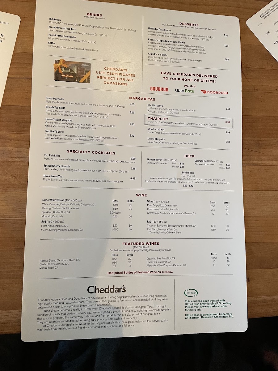 Cheddar's Scratch Kitchen Aurora Menu (2025 Update)