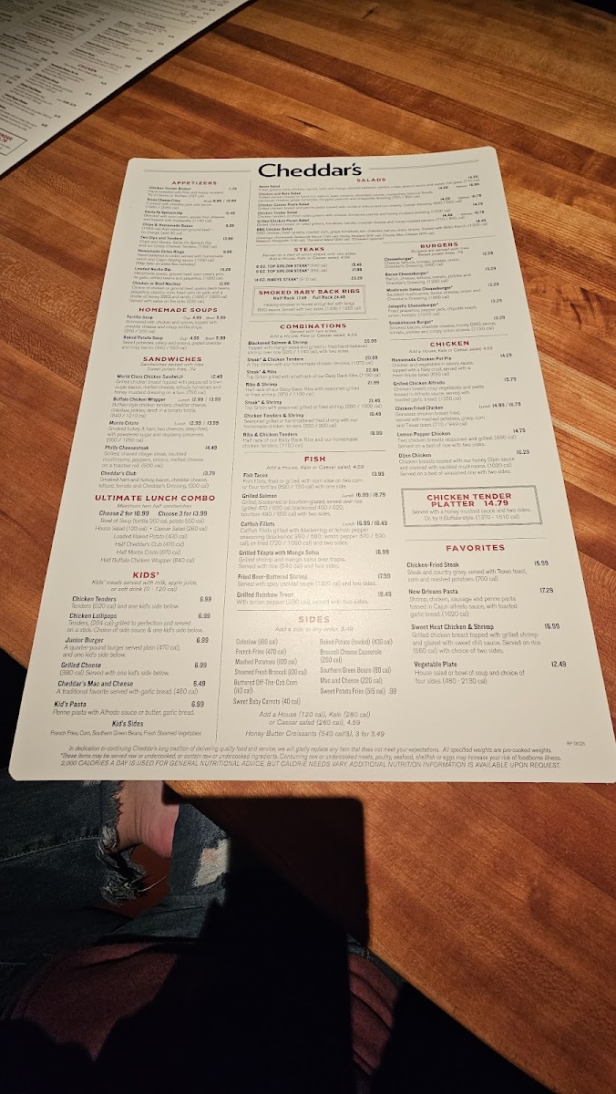 No detail is overlooked here—from the inviting dim lighting to the friendly service. The restaurant balances a vibrant yet cozy atmosphere, making it an ideal spot for both casual dinners and special occasions. Choose Cheddar's for an unforgettable dining experience!